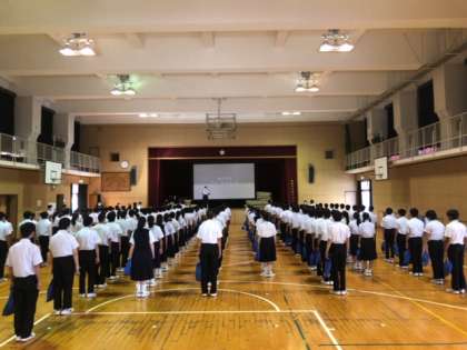 3年生は7限目に体育館で、修学旅行の行程を確認しました。