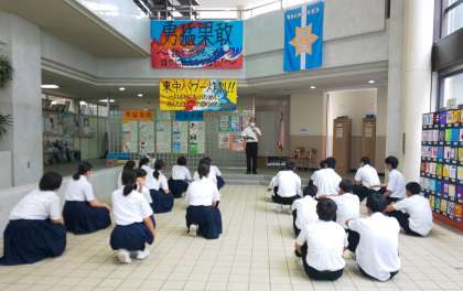 校長先生より大会にエントリーしている東中生へお話がありました。
