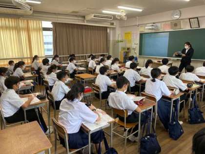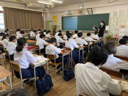 1年3組と楠田先生の保健の授業です。デジタル教科書も使用して充実した授業が展開されています。