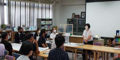 各班の話し合い・発表の後、大阪市教育センターより講師の先生をお招きして、指導講評をいただいています。