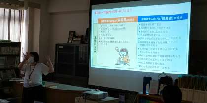 指導講評の際には、パワーポイントを活用して、「主体的対話的で深い学び」や新学習指導要領への移行に向けた評価などをテーマにご講話いただきました。