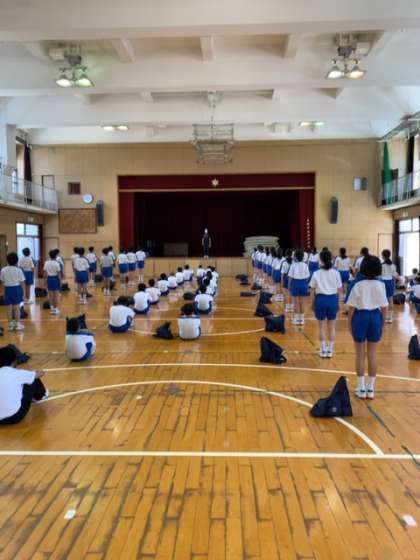 本日は、前回の気を付け・休め・方向転換に加えて、体育大会の式典の練習を行っています。