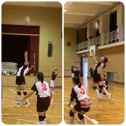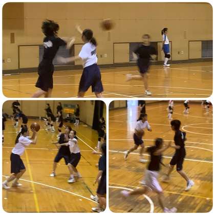 卒業アルバム用の写真撮影の1日目。体育館では、女子バスケットボール部が、特別な大会を9月6日(日)に控え、練習に励んでいます。また、昨日、大会で区切りを迎えたバレーボール部の3年生はリラックスした表情を時折見せながら、後輩たちとゲーム形式の練習をしています。