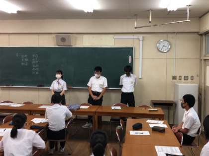 各クラスの代表者が集まり、修学旅行大成功に向けた取り組みが始まりました。
