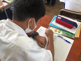 英語の授業では、数字を英語で表現できるよう練習しています。11からは難しいですが、頑張りたいですね。