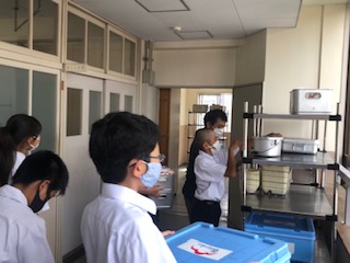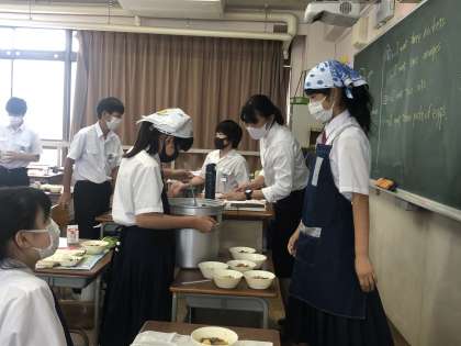 給食の時間は、準備や片付けのために、当番が積極的に動いています。実習生は来週月曜が最終日です。みんなとの思い出いっぱいですね。