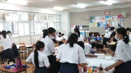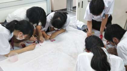 教室で活動している裏側で、学級旗の作成も行なっています。各クラスのイメージを表す、素敵な学級旗ができそうです。