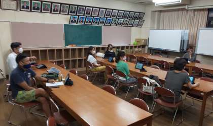 座席の間隔を十分に確保し、タブレットを閲覧しながら学校の現状報告等、また今後のPTA活動についての意見交換が行われました。