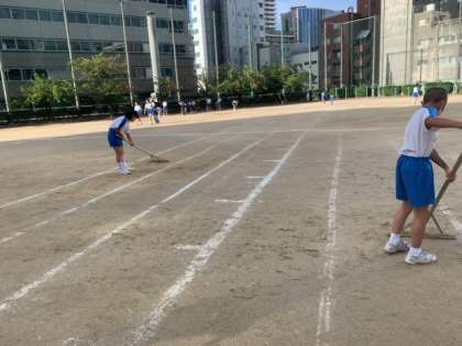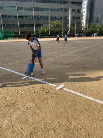 ライン引き、グラウンド整備、石の取り除きなど一人一人が仕事を探して動いています!