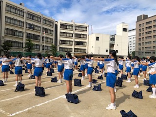 前半は開会式の練習を行いました。東中体操は気持ちを込めて、しっかり腕を伸ばして、美しく体操をすることができています。