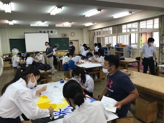 6時間目の学活では、体育大会に向けて応援グッズの作成をしています。