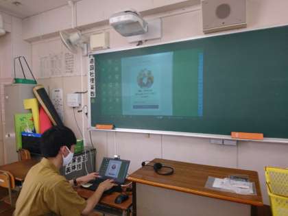 教室では先生方が、Teamsの接続テストに向けて準備をしています。