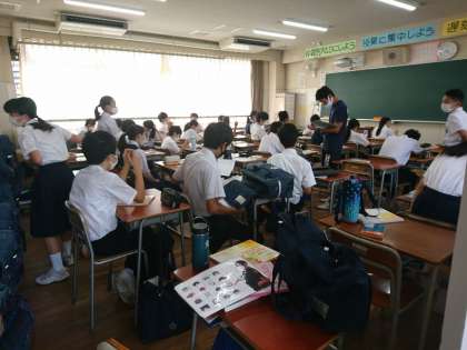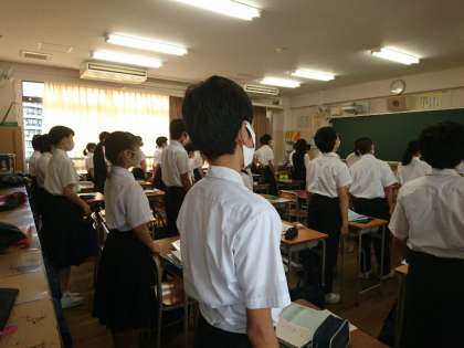 健康観察を行ってから、全校集会がはじまりました。落ち着いて放送を聞くことができています。今週も1週間がんばりましょう!