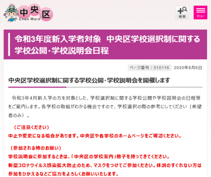 学校選択制に関する説明会・学校公開日について
