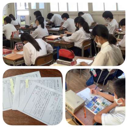 手作りのワークシートは、1つ1つの字までチェックし返却されます。入試問題を意識しつつ、基礎基本をしっかりと押さえながらの学習。授業の最後には音読。さすが3年生。その立派な音読に拍手が起こりました。