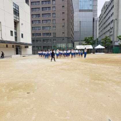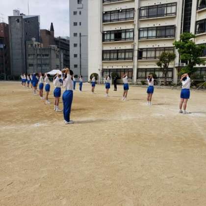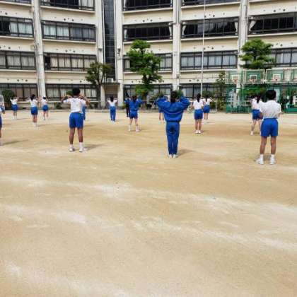今週末の体育大会ではマーチング行進できることになりました。今日はそれに向けてのレッスンです。