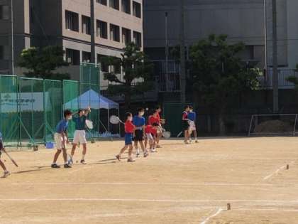 過ごしやすい秋空の下、ソフトテニス部は練習をしています。