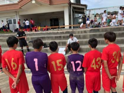 前半早々に失点し、苦しい展開で進むと、ミスからまたしても失点してしまい、前半が終了します。ハーフタイムにミーティングを行い、もう一度自分達が何をすべきかを確認し、しっかりと戦う気持ちを持って後半に入りました。