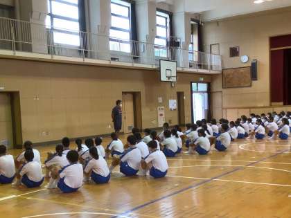 体育大会予行を昨日終え、小雨の朝を迎えました。体育大会実行委員のメンバーは疲れが残っているはずですが、どこか充実感のある表情で体育館で最終確認をしています。