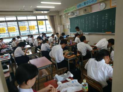今日は給食ではなく、各自で持参した弁当等をたべています。