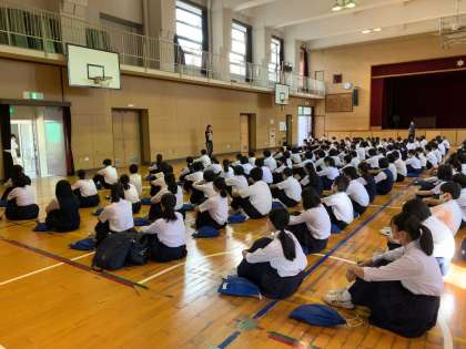 今朝は、体育館への集合も早く、よい形で学年集会を行うことができました。