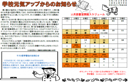 学校元気アップからのお知らせ(10月)です。(こちらをクリックするとご覧いただけます)