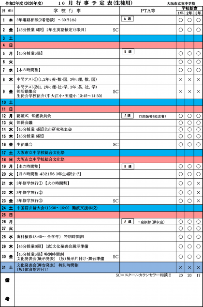 中間テスト・修学旅行・文化発表会などが予定されています。