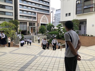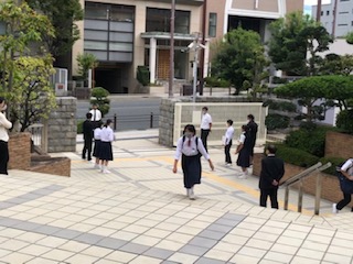 今朝は放送による全校集会のため、放送室で準備が行われています。
