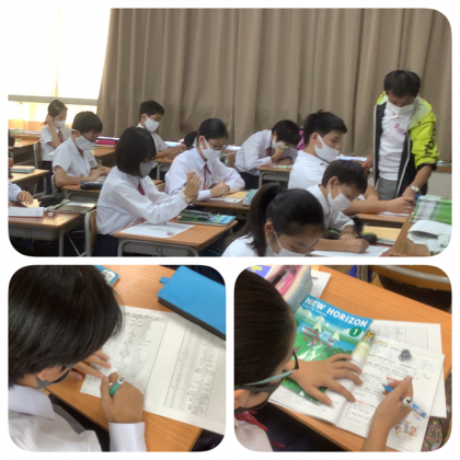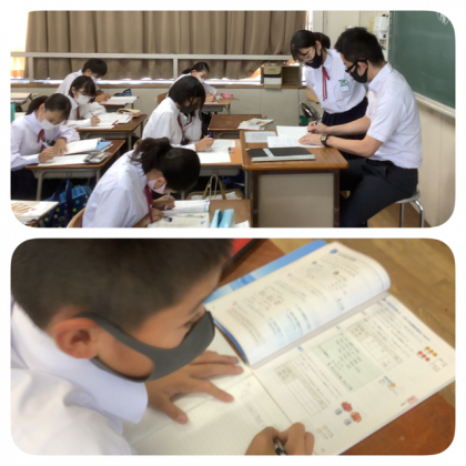 1年生の授業(その2)です。4組数学、5組英語。一人ひとりが集中して中間テストに向けての学習に取り組んでいます。学んだ事柄を復習し、問題演習で活用し、学んだ事柄の定着を図っていきます。