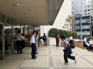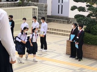 さっそく、朝のあいさつ運動に参加しました。