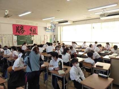 3組の様子です。生徒の質問に担任の先生が答えています。