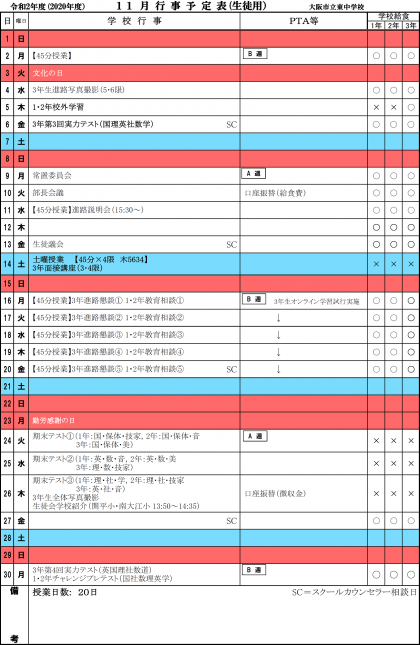11月の行事予定表