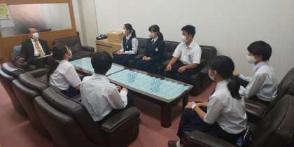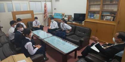 本日、昼休みの校長室では、後期生徒会役員の皆さんが校長先生との意見交換会を行っています。