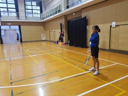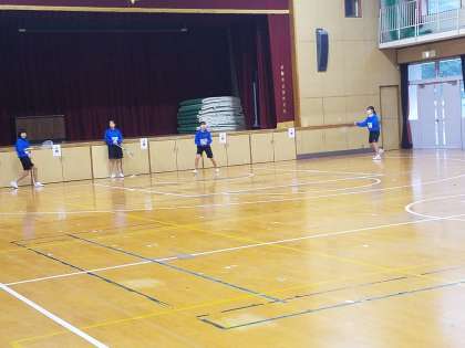 大会出場予定の8名は短時間でしたが、体育館でボールをうちました。