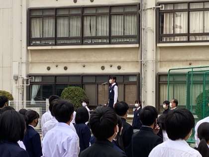 ソフトテニス部と総合文化祭の賞状伝達と常置委員会からの連絡がありました。修学旅行に向けて、文化活動発表会に向けて、それぞれ頑張りましょう。