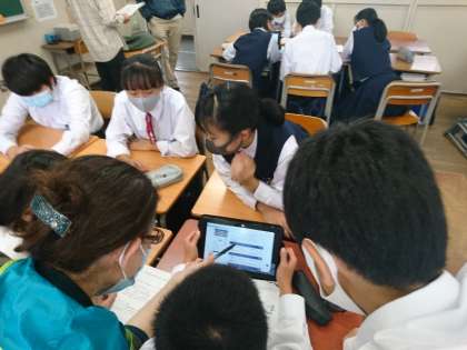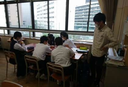 校外学習の取り組みをしています。各班で、見学施設の確認や、役割分担をしています。