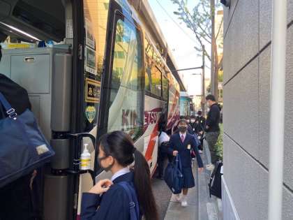 バスに乗り込み無事に出発しました。実りの多い修学旅行になりますように。