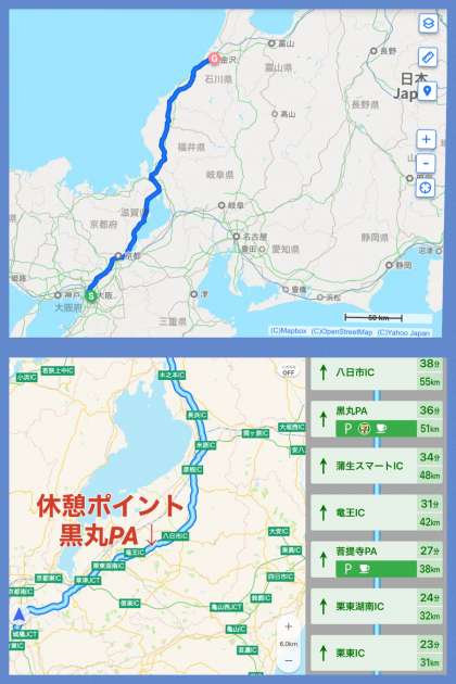 朝早く出発したことで、渋滞を回避することができました。まもなく予定通り黒丸PAで1回目の休憩です。