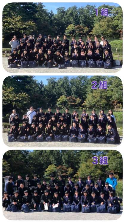 修学旅行 兼六園にて学級写真(1)