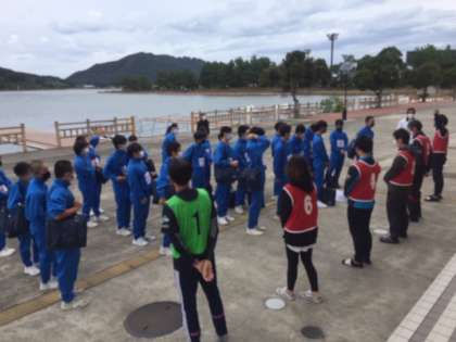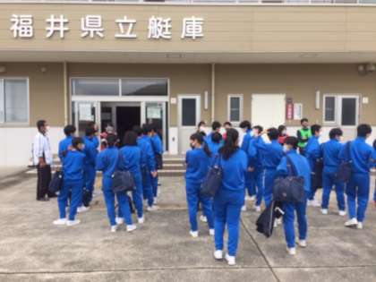 ボート体験ですが 風が強いため 陸上でのエルボマシーンの体験に変更になりました。