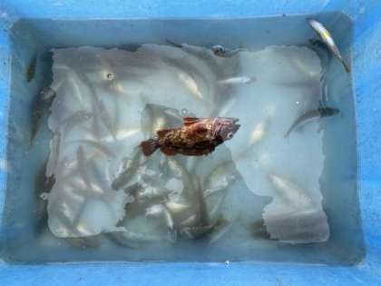 午前中の釣りが終了しました。かなりの魚が釣れ桟橋は大賑わいでした。