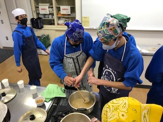 みんな味見をしながら美味しいお味噌汁を作っています。