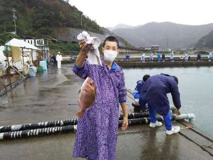 雨が降る中でしたが、海上釣り堀ではたくさんの魚が釣れました。
