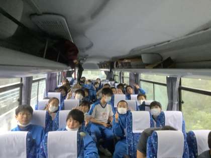 生徒たちは、昨日の体験活動や民泊の様子を語り合い、時々、お菓子を口に頬ばりながら穏やかに移動のバス車中を過ごしています。