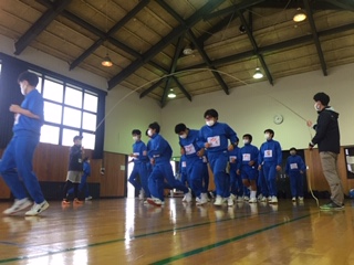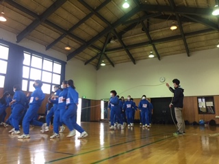 グルグル回っている 大縄跳びを 1人 2人 3人 4人 5人 6人と人数を増やして また1人からと 声を掛け合って 相談しあい 目標クリアできるように 頑張っています。