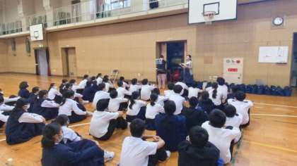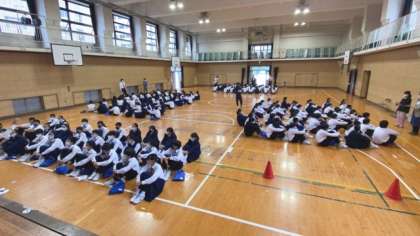 1年生は6限目に体育館で校外学習の取り組みをしています。