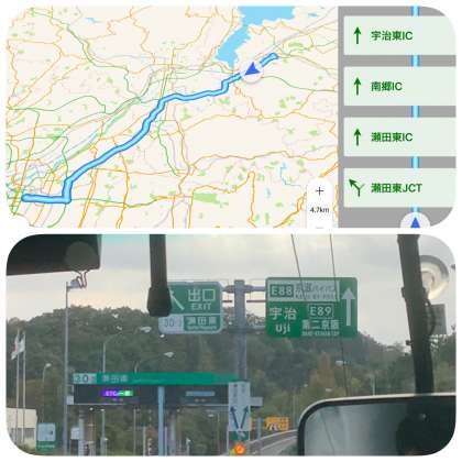 3年生が乗ったバスは、草津インターを16時に出発しました。学校到着予定時刻は17時30分頃、解散時刻は18時頃の予定です。