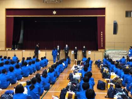 先生方、部活動をしていた生徒たちに迎えられ東中学校に到着しました。