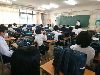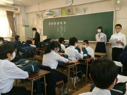 今日は、情報機器実行委員会のみなさんから、「情報機器をテーマにした標語を考えてみよう」のプリントについて説明がありました!プリントを持ち帰って、明日までに標語を作ってみましょう。