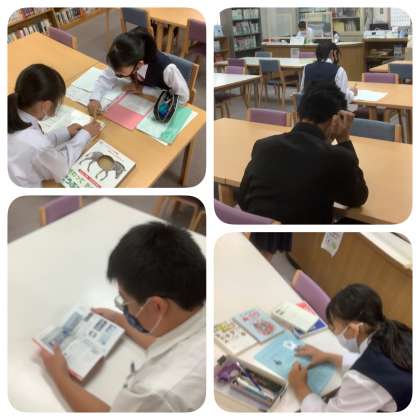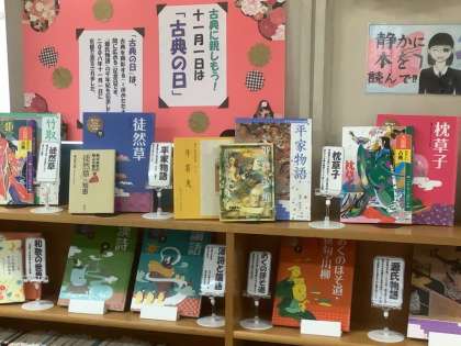 全校集会で、2年生の図書委員長から「古典の日(11月1日)」についてと、図書館に「古典コーナー」が整備されていることについての紹介がありました。その効果もあり、昼休みには40人近い来館者がありました。